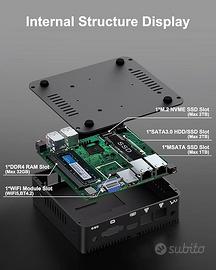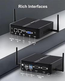 BASOARO PC Industriale Celeron J4125, 8GB RAM 128GB SSD, Gigabit Ethernet, Doppio Display HD VGA, 2 RS232 COM, WiFi Dual Band, BT, Mini PC Win 10.