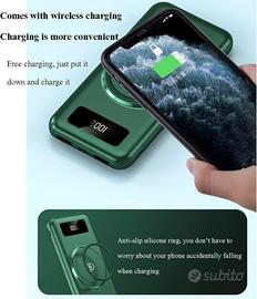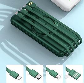 Un power bank ad alta capacità da 20000mAh, ideale per chi ha bisogno di ricaricare più dispositivi in mobilità. Grazie alla tecnologia wireless e ai 4 cavi integrati, offre massima comodità senza bisogno di cavi aggiuntivi.