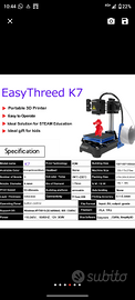 Vendo mini stampante 3d funzionante. Ovviamente non fa stampe senza difetti ma per cominciare e provare va bene.