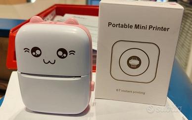 Mini stampante portatile termica, stampa solo in bianco e nero su rotolini di carta termica (gli scontrini). Nuova, ancora imballata. Regalata a mia figlia per Natale, mai usata. Ottima per la scuola. I rotoli di carta termica si acquistano dappertutto, ad esempio su Amazon, e*ay, shein, ecc...