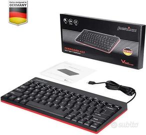 Tastiera Perixx PERIBOARD-422, di colore nero e rosso. - Tastiera compatta e leggera. - Connessione USB-C. - Design elegante. - Colore Nero