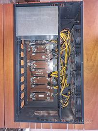 Mining RIG completo di scheda madre, processore, ram, ssd, alimentatore, ventole. Disponibili circa 30 unità. Di seguito le specifiche: Struttura in alluminio che consente di alloggiare 8 GPU. Scheda madre modello ONDA AK2980 D8P 55 con CPU integrata e 4GB RAM. Memoria M2 64GB. 4 ventole professionali. PSU ONDA 1850W 80+ gold. In caso di spedizione il tutto verrebbe imballato con la massima cura. A disposizione per chiarimenti. Grazie per l'attenzione.