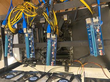 completo di cavi, scheda madre, RAM 8GB, 3 alimentatori di cui uno CORSAIR RM 850x, adattatori PCI Express e ventole di raffreddamento. usato pochissimo. Schede video escluse dal pacchetto