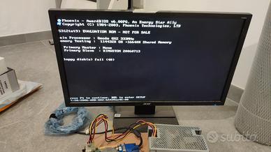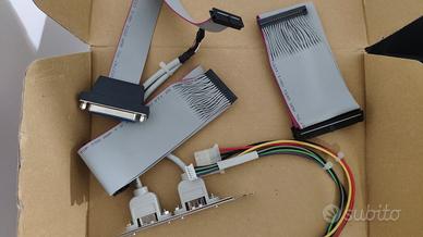 Scheda per controllo industriale completa di cavi, memoria e RAM e alimentatore.