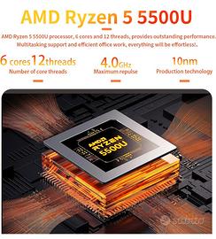 AskHand Mini PC AMD Ryzen 5 5500U (6C/12T up to 4.0GHz) 16GB DDR4 RAM 512GB PCIE NVME SSD/WiFi 6/ BT-5.2 /USB*4 /USB-C /2*HDMI, Triple Display. Windows 11. causa inutilizzo vendo. acquistato a giugno 2024.
