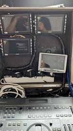 il mixer è in un flyt case con all'interno 4 monitor per avere le anteprime delle videocamere e la diretta.