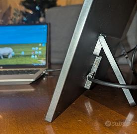 Ingressi USB e HDMI con attacco VESA e pratico piedistallo inclinabile per l'utilizzo in mobilità. Se il PC lo supporta funziona anche collegando solo il cavo USB C che fornisce sia alimentazione che video.