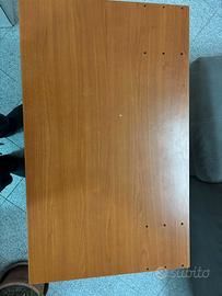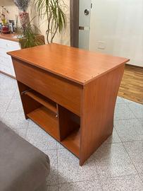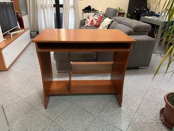 mobiletto per PC un po' datato ma ancora valido e funzionante. piano estraibile per tastiera e per stampante; predisposizione per installare altre parti nel piano superiore. Misure 90x55x78, l'ingombro massimo con piano tastiera aperto passa da 55 a 69. Sul piano superiore è presente una scheggiatura come si può notare in foto.