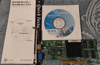 Vendo kit hardware vintage proveniente da PC dei primi anni 2000, spento funzionante circa 15 anni fa e non più testato. Il lotto include: - Scheda Madre: ASUS A7A133/PA-UAY in confezione originale completa - Processore: AMD Athlon XP AX1700DMT3C - Blocco dissipatore CPU con ventola - Memoria RAM: 2x SDRAM 128MB, 1x SDRAM 512 MB -Scheda Video: MSI MX200 Pro2 T32s (NVIDIA GeForce2 MX200 AGP 32MB) (MSI MS-8839) - Scheda PCI da 4 porte USB 1.0 - Fax/Modem 56k Hamlet PCI N.B. La scheda madre presenta 4 condensatori rigonfiati, come evidenziato in foto. Tutto l'hardware è stato smontato da un PC spento funzionante circa 15 anni fa e mai più riacceso. Vendo con formula 'visto e piaciuto' nello stato in cui si trova, non testato di recente.