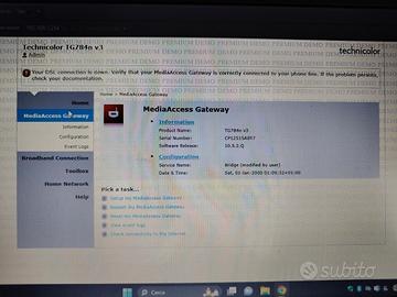Vendo modem Technicolor TG784n V3, completo di scatola. Può essere usato sua come modem ADSL sia come access point wifi. Il firmware è stato aggiornato e permette la configurazione con qualunque operatore.