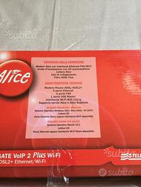 Vendo a causa inutilizzo perfettamente funzionante Modem Alice VoIP Gate 2 Plus Wi-Fi modem ADSL 2 + Ethernet /Wi-Fi /Fxs