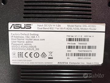 Modem Asus DSL-AC52U. Dual-Band simultaneo: 433 su 5 GHz e 300 Mbps a 2,4 GHz