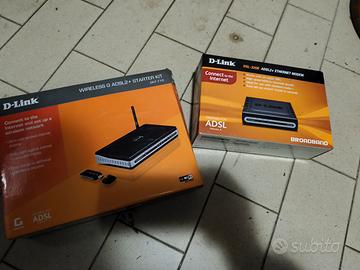 D-Link DKT-710 Wireless G ADSL2+ Starter Kit: Questo kit è una soluzione completa per la condivisione di Internet wireless. Include un modem/router ADSL2+ (modello DSL-2640R) e un adattatore USB wireless G (DWA-111), offrendo una velocità LAN wireless fino a 54 Mbps. Presenta funzionalità di sicurezza avanzate come WEP/WPA/WPA2 e un firewall SPI integrato.
