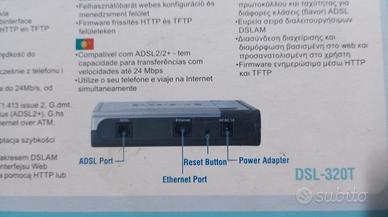 Modem ADSL marca D-Link mod. DSL-320T, perfettamente funzionante vendo completo di accessori: alimentatore, cavi, CD, filtro ADSL. Non spedisco. Consegna a mano a Mestre o Padova.