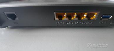 Modem Router per VDSL o ADSL 4 porte Gigabit Ethernet, WAN alla porta LAN 1 Wireless AC a 1.300 Mbit/s Wireless N a 450 Mbit/s Bande di frequenza da 2,4 e 5 GHz in simultanea 2 porte USB 3.0 per memoria e stampante Usato ma perfettamente funzionante Con cavo di rete e telefonico ma senza scatola originale Alimentatore non originale. (#318)