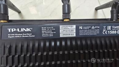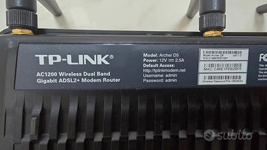 TP-Link Archer D5 Modem Router Wireless, Dual Band AC1200, ADSL2+, 4 Porte Gigabit Ethernet, 2 Porte USB, 3 Antenne