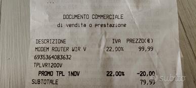 Vendo modem acquistato a novembre 25 collegato alla corrente in attesa della linea nuova ma mai utilizzata è stato in tensione per un mese e poi rimesso nella scatola