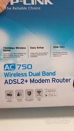 vendo come da titolo modem router ac 750 ADSL2, wireless dual band Acquistato ma mai utilizzato poiché è stata cambiata la linea con acquisto modem dedicato.