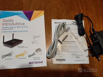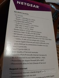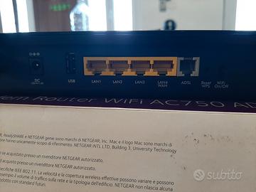 Modem router netgear adsl e adsl+, per le caratteristiche vedere le foto. Tenuto bene. perfette condizioni con scatola manuali cavi
