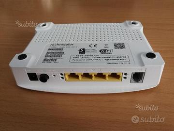 Modem Router ADSL Wi-Fi Technicolor dotato di 4 prese ethernet, interruttore di accensione/spegnimento, WPS, dotato di prese d'aria per un raffreddamento ottimale.