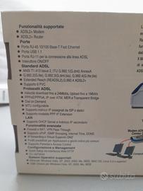E' dotato di 1 porta USB 1.1 per un eventuale utilizzo come tradizionale modem ADSL USB e di 1 porta Ethernet 10-100.