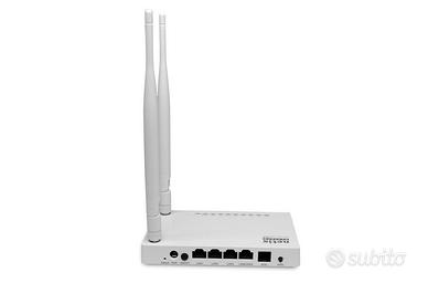NETIS DL4323 per internet via cavo e wireless, ADSL/ADSL2/ADSL2+ fino a 24 Mbps in download e fino a 1 Mbps in upload, wifi N fino a 300 Mbps, 1 porta lan/wlan più 3 porte lan, 2 antenne orientabili, interruttore on/off, firewall integrato, tasto wps.