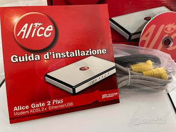 Modem Router Alice Gate 2 Plus Modem ADSL2+ Ethernet/USB COME NUOVO Mai usato Con imballo e accessori originali Con guida e CD Autoinstallante