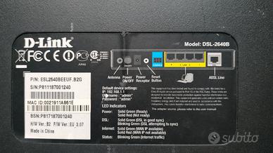 Modem router ADSL marca: D-Link modello: DSL-2640B WiFi-LAN senza alimentatore (12 Vcc 1 A).
