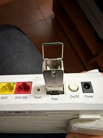 Vendo modem/router D-Link DVA-5592 completo e perfettamente funzionante, ideale per connessioni fibra FTTH/FTTC. Incluso modulo SFP fibra Huawei SmartAX MA5671A già installato nell’alloggiamento, pronto all’uso. Caratteristiche principali: •WiFi dual band 2.4 GHz + 5 GHz •4 porte LAN Gigabit (GbE) •Porta WAN dedicata •Porta DSL (ADSL/VDSL) •2 porte telefono (VoIP) •2 porte USB •Tasto WPS e WLAN •Slot fibra (SFP) con adattatore Huawei incluso Condizioni: •Usato ma funzionante al 100% •Normali segni del tempo (vedi foto reali) •Sempre tenuto in ambiente domestico Perfetto per: •Fibra ottica diretta (FTTH) con modulo SFP •Uso come router puro o modem/router •Backup linea o secondo impianto Contenuto: •Modem D-Link DVA-5592 •Modulo fibra Huawei MA5671A già inserito Spedizione veloce e imballo accurato