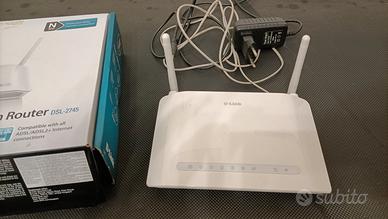 Modem router D-Link N300, completo di scatola, alimentatore e cavo ethernet.