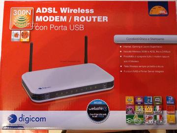 Vendo modem router wireless della DIGICOM, condizioni impeccabili completo di confezione, cavetti, cd, guida installazione. Utilizzabile anche con Windows 10.