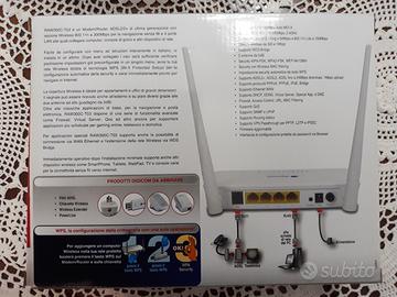 Il Digicom RAW300C-T03 è un modem/router ADSL2/2+ di ultima generazione con sezione Wireless 802.11n a 300Mbps per la navigazione senza fili e 4 porte LAN alle quali collegare computer, console di gioco e altri dispositivi di rete. Facile da configurare con istruzioni interamente in italiano, si installa in un attimo.