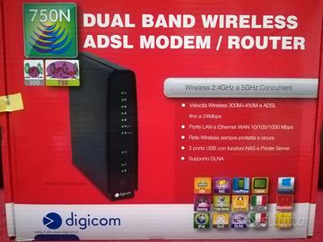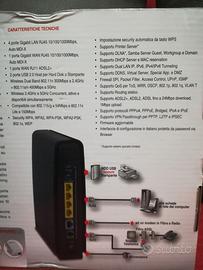 RAW750-A04 è un Modem/Router ADSL2/2+ Multifunzione con sezione Wireless Dual Band Concurrent 2.4GHz e 5GHz fino a 750Mbps per la navigazione senza fili e 4 porte LAN Gigabit alle quali collegare computer, console di gioco e altri dispositivi di rete.