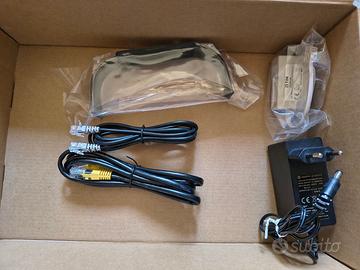 Modem router TIM HUB+ modello DGA4331TIM Technicolor. Funziona con linee ADSL / VDSL e Fibra Ottica FTTH. Wi-Fi 6 (802.11ax) dual band 2.4 / 5 Ghz. 4 porte LAN, 2 porte USB, 2 porte TEL. Completo di confezione originale, alimentatore, filtro ADSL, cavo ethernet, cavo telefonico e supporto. Il filtro e i cavi sono nuovi e mai usati. Funzionante e in ottime condizioni estetiche. Vendo per cambio operatore. Trattandosi di vendita fra privati, l'oggetto viene ceduto "così com'è", "as is", "visto e piaciuto" e senza garanzia alcuna.