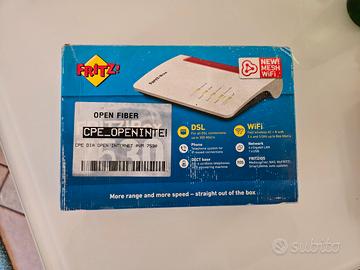 Vendo modem/router FritzBox 7530 in ottime condizioni, usato circa 3 anni in ambiente domestico. Funzionante perfettamente. Contenuto della scatola: Router Fritz!Box 7530 Alimentatore originale Cavi originali Guida rapida multilingua (incluso italiano) Scatola originale Caratteristiche principali: Modem DSL/VDSL fino a 300 Mbit/s Wi-Fi dual band AC+N (5 GHz + 2.4 GHz) 4 porte Gigabit LAN + 1 USB Base DECT integrata per cordless Compatibile Open Fiber, FTTH, FTTC, ADSL Vendo perché non più utilizzato. Nessun difetto, nessun danno. Scambio a mano su Torino e provincia