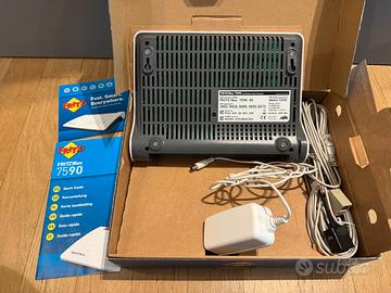 Vendo Fritz!Box 7590 preso con Tiscali in ottime condizioni, completo di alimentatore e cavi originali. Modem/router top di gamma AVM (versione Wi-Fi 5), ideale per casa e ufficio: