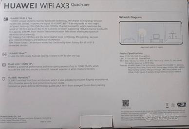Vendo Modem Router Huawei AX3000 Wi-Fi 6 (versione 4 core), router dual-band ad alte prestazioni, ideale per chi vuole migliorare velocità e copertura rispetto ai router tradizionali.