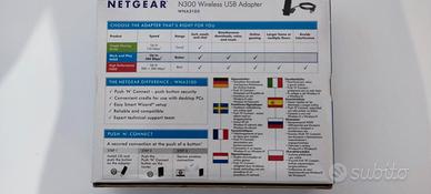 Modem Router Netgear comprensivo di USB Adapter N300 Wireless WNA 3100 per collegare a distanza un PC fisso che non ha il sistema di connessione Wi-Fi