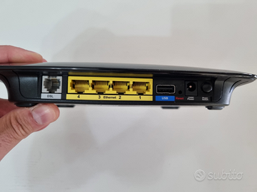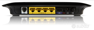 Router ADSL2+, Switch 4 porte Gigabit 10/100/1000, Access Point Wireless Standard N 300Mbps, Dual Band 2.4/5ghz, StorageLink USB, Media Server, Mimo, QoS, Firewall.