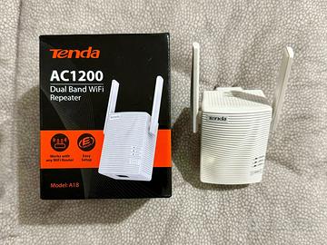 Vendo Modem router Tenda AC1200 + extender Wi-Fi Tenda A18 AC1200, usati pochissimo e in perfette condizioni. Il setup è stato resettato e sono pronti all’uso.