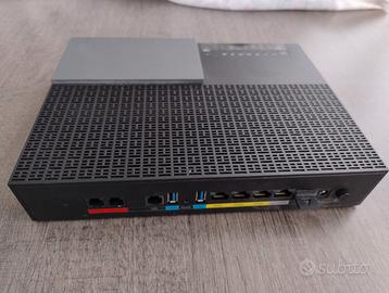 Offre una connessione dual-band Wi-Fi (2.4 GHz e 5 GHz) con 6 antenne per una buona copertura. Dispone di porte Gigabit Ethernet, 2 porte FXS per telefoni VoIP, e 2 porte USB per collegare hard disk e stampanti.