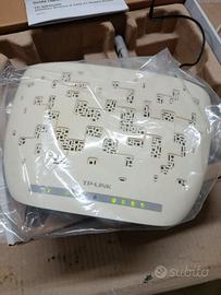 Vendo come da titolo modem router della tp-link adsl 2 wireless 300mbps pari al nuovo usato pochissimo come si evince dalle foto per passaggio a fibra. Modem/Router ADSL2+, Access Point wireless N, 4 porte LAN 10/100Mbps Fast Ethernet