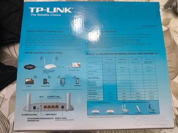 Modem router TP-Link bianco, modello D-W8961N. - Connessione DSL2+. - Velocità Wireless N 300Mbps. - Design 11-in-One.