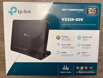 Modem/ Router TP-Link VX220-G2V Wifi 6, fino a 1200 Mbps WAN 1 Gigabit 4 x LAN 1 Gigabit 1 x porta USB Supporto DSL e linea telefonica