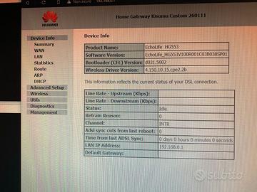 Vendo Vodafone Station Huawei EchoLife HG553 sbloccata, in modo che possa operare con qualsiasi operatore telefonico, non solo con Vodafone ma con tutti gli operatori che forniscono traffico dati 3g (va connessa una sim, non fornita, nella chiavetta usb supportata 3g non fornita)