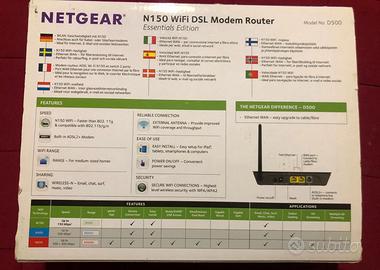 Vendo per inutilizzo Modem Router Wi-Fi DSL Netgear N150 Modello D500. Caratteristiche tecniche: