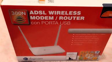Vendo per passaggio a fibra Modem Router Wireless ADSL2+ N300 Mbps 4 Porte Ethernet / USB 2.0, usato poco piu' di un anno e completo di tutti gli accessori nella sua scatola originale