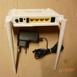 MODEM ROUTER WIRELESS 300 MBPS ROUTER WIRELESS RETE 3G / 4G SWITCH LAN ACCESS è la soluzione integrata e compatta per il networking wireless su ADSL2/2+ o su rete 3G/4G tramite internet key esterna (NON fornita nella confezione) o su porta Ethernet WAN. Con 4 dispositivi racchiusi in uno: un Router ADSL2/2+, un potente Access Point wireless a 300 Mbit/s, un USB server per condividere chiavette di me-moria/hard-disk o Internet key 3G/4G e uno switch a 4 porte 10/100. Permette di collegare a Internet una rete (domestica o aziendale) di PC, Console di gioco, Tablet, Smart Phone e altri dispositivi di rete via cavo o senza fili. Schermati codici in foto ma presenti su modello. Vendo per non utilizzo. Spedizione a carico dell'acquirente