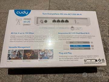 Cudy LT500E Modem Router Veloce 4G LTE Cat 4 con Slot per Scheda SIM, AC1200 WiFi, OpenVPN, Wireguard, IPsec, Client VPN, Antenne Interne, Mesh con 4 attacchi RJ45 per PlayStation, PC, o altro