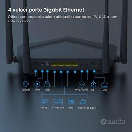 •4 porte Ethernet Gigabit: con 4 porte LAN funzionanti a 1 Gb/s, puoi usufruire di servizi DSL ad alta velocità e applicazioni multimediali ad alta intensità di banda come TV HD, computer, servizio NAS e console di gioco in modo molto più semplice e veloce che mai.